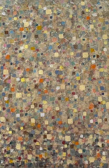 A trip to New York City inspired this small, abstract painting. I imagined all the people in all the skyscrapers and merged with them in the crowds on the street. All the colors and personalities jumbled together, each a universe unto themselves and yet comingled, interconnected, and in constant motion they become one.