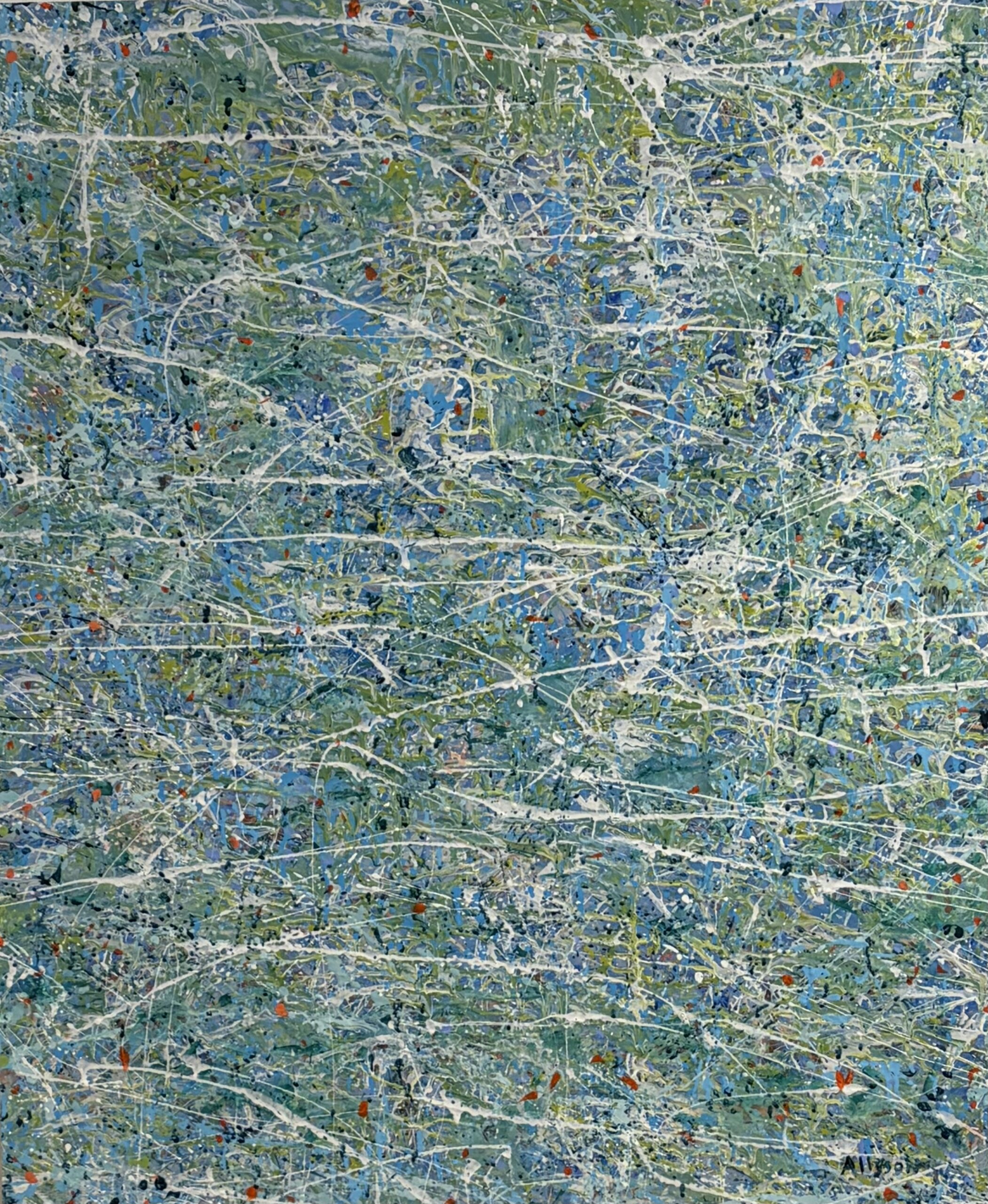 This painting is about self-reflection. Ripples on the water are like ripples on the edge of our consciousness. When we sit with them awhile, thought patterns emerge.