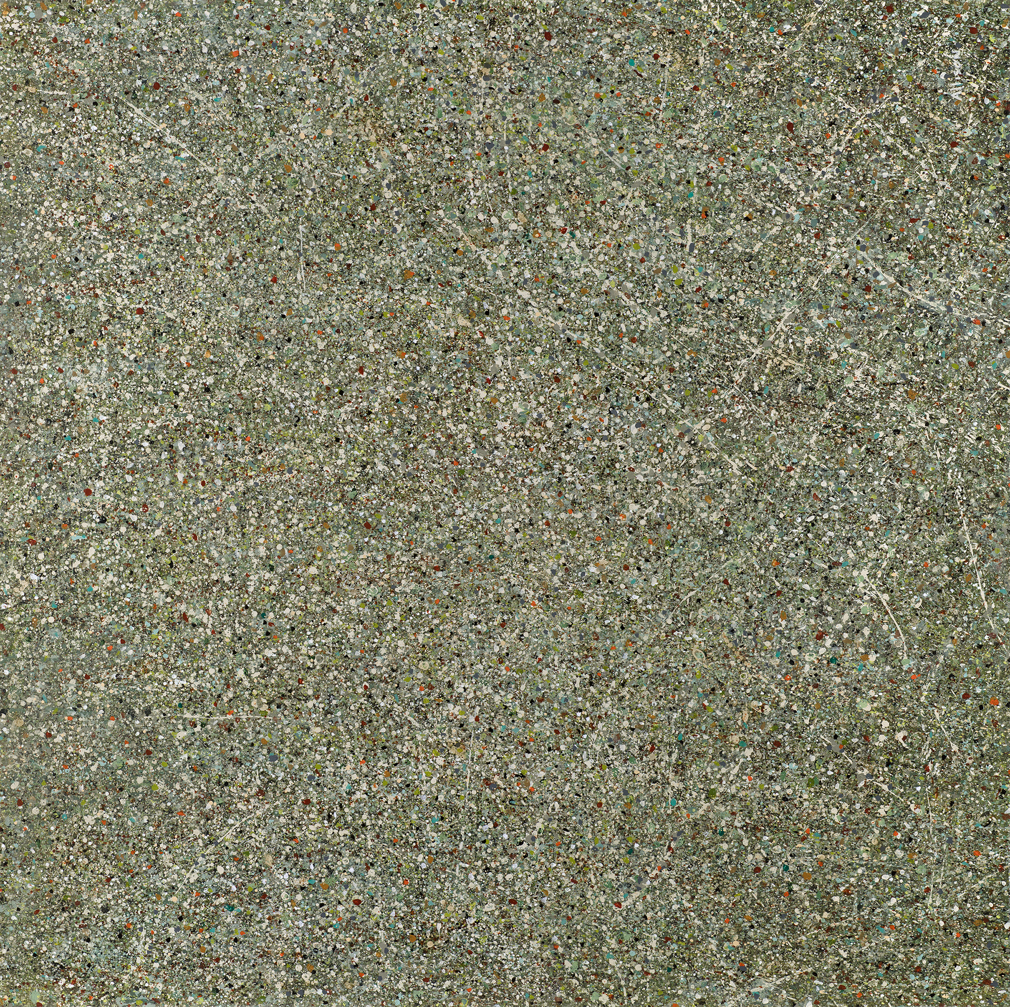 In this piece, I created a granite-like surface to talk about how I feel in some situations, but if one looks closely, the artwork is reminiscent of the lichen that grows on the granite. It, too, is resolute. But it's patient. It's calm. It endures. Eventually, small, soft lichen will fracture the granite. Perhaps one doesn't need to be stony afterall.